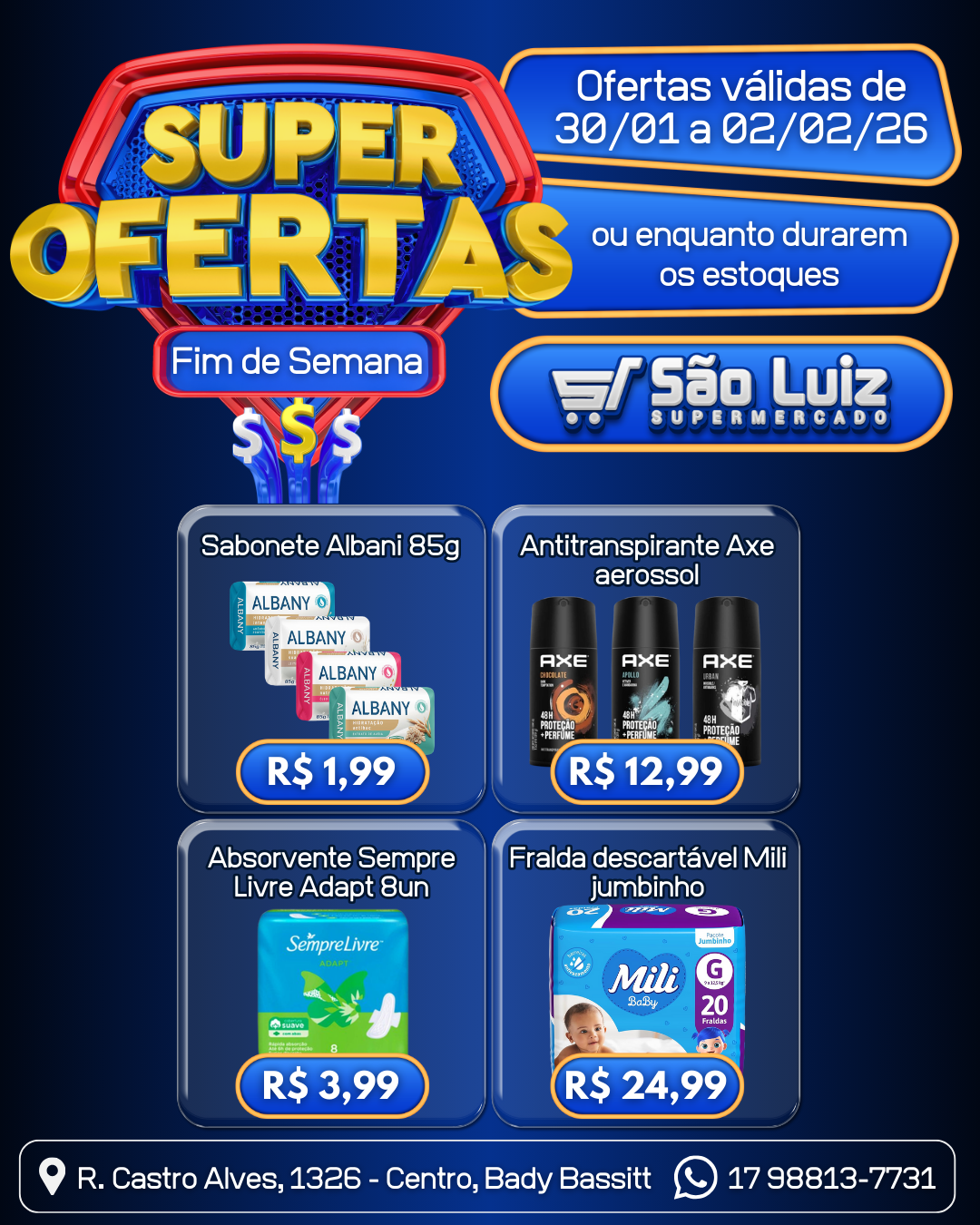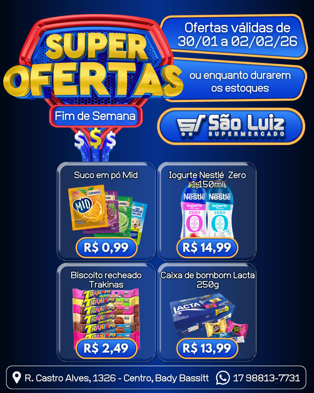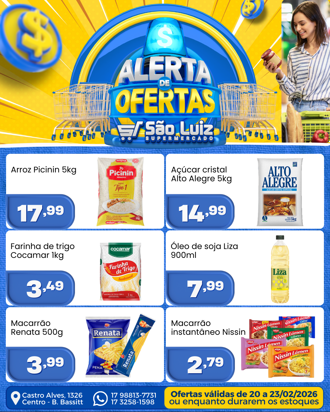 Após 18 anos da sua inauguração, ainda mantemos nossas raízes familiares que nos trouxeram até aqui, cultivando boas relações com nossos clientes, com um atendimento de primeira, produtos de qualidade e grande variedade de opções. Aqui nossos clientes encontram, além de produtos de um supermercado convencional, Padaria, Açougue, Utensílios domésticos, Presentes, Bazar e Papelaria, tudo em um só lugar.