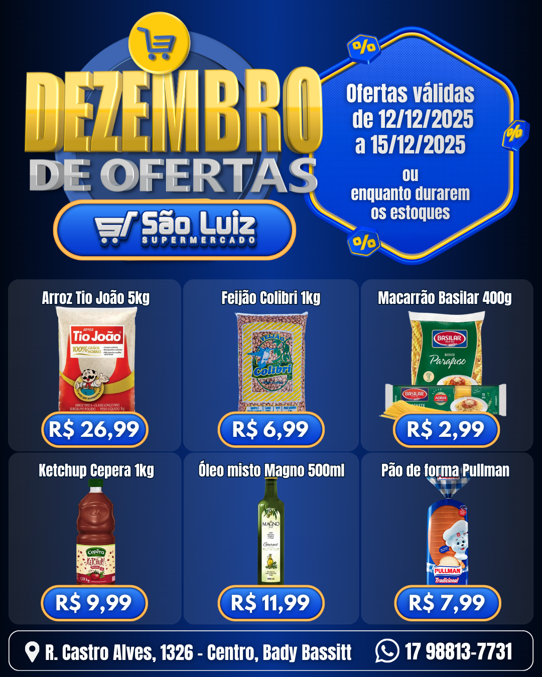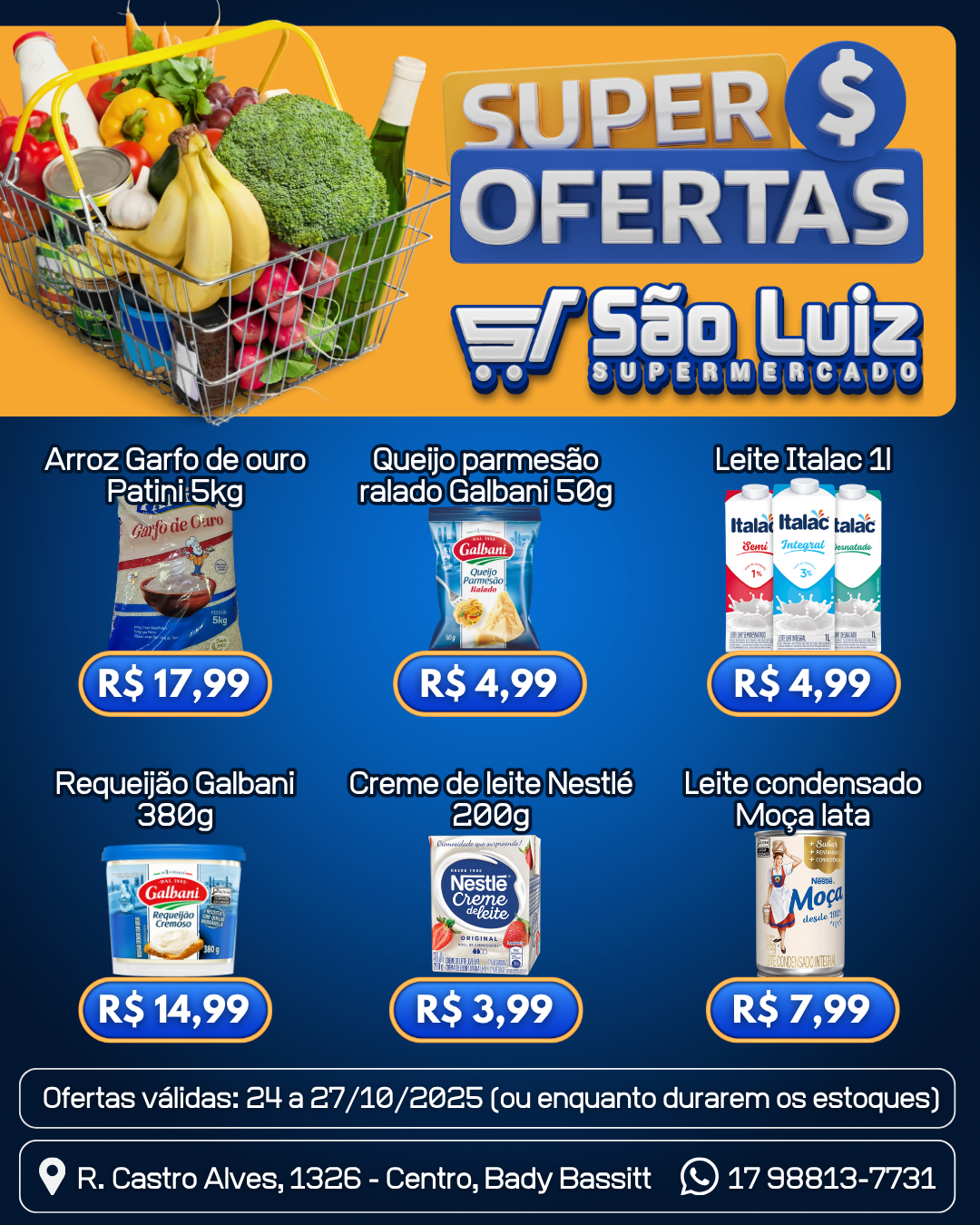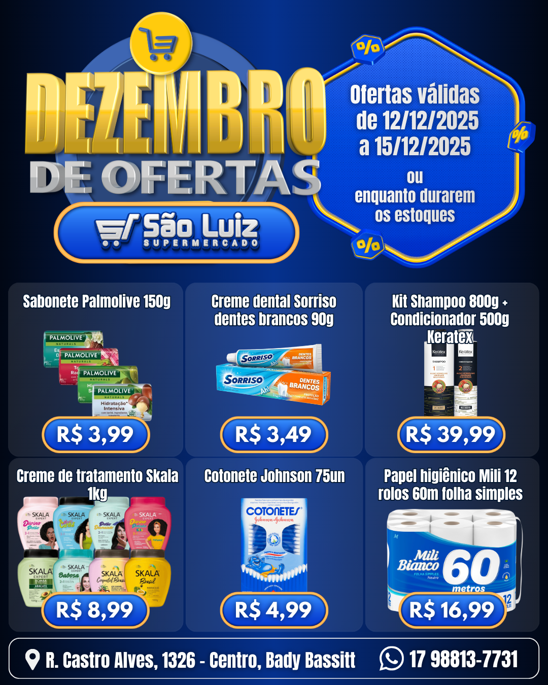 A nossa história começa lá em 2000, quando nossos fundadores (Seu Luiz e Dona Fátima) tiveram a oportunidade de abrir seu primeiro negócio, montar uma loja de moda feminina no centro de Bady Bassitt. Após alguns anos de trabalho, por volta de 2007, surgiu a oportunidade de alugar o salão ao lado, bem mais amplo, e com a aquisição da estrutura de um supermercado, surgiu o São Luiz Supermercado.